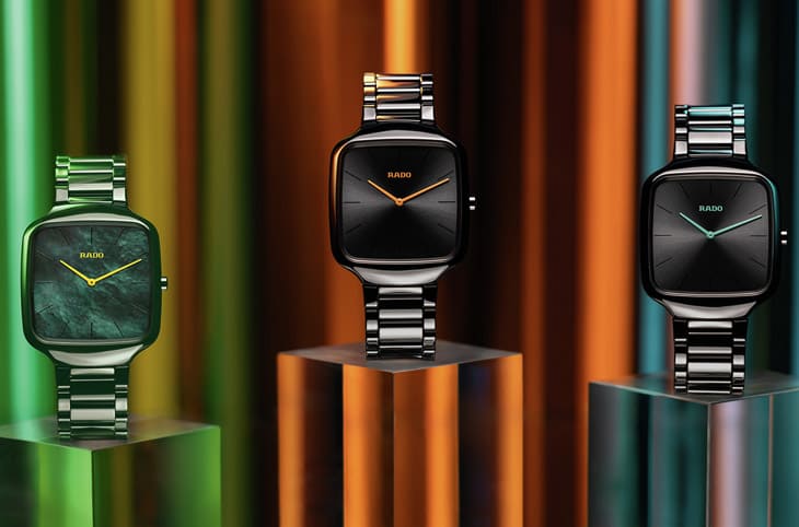 RADO雷達表真我方型系列超薄錶新增三款作品,它們為系列首見的深邃綠與夜幕黑款式,其中後者又還分成兩種款式。這三款真我方形系列新作都採用拋光高科技陶瓷錶殼與錶鍊,融合極簡設計美學,散發出強烈的現代都會風情,簡潔卻搶眼的設計很能吸引視覺共鳴。