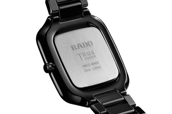 True Square真我方形系列超薄高科技陶瓷錶外觀蜿蜒曲折的設計顯得精美細膩,觸感則是光滑親膚。其中兩款「夜幕黑」款式街搭配搭配黑色面盤和黑色印製時標展現低調細膩色調,雷達表分別以兩種顏色的漆面指針為手錶點亮視覺效果,包括綠松石色或太陽橙色,除了指針還有12點方向的品牌Logo也使用相同的顏色,在黑色背景烘托下,彩色漆層便猶如城市夜景中的明亮燈光,讓人第一眼就盡收底眼。