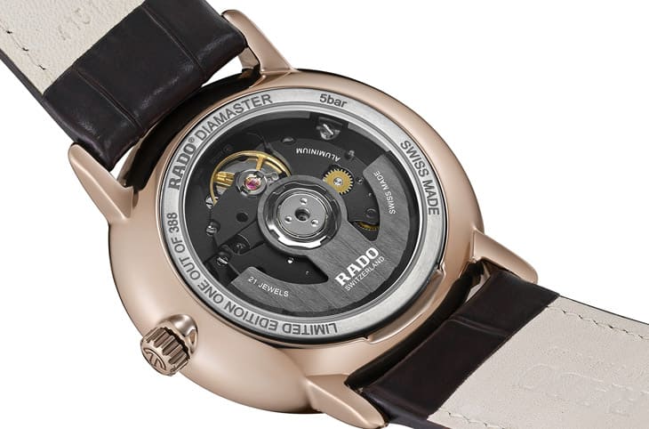 ▲透明底蓋可見R766自動機芯以及其鍍黑的機芯組件,同時底蓋邊緣也刻有手錶限量編號,強化收藏意義。