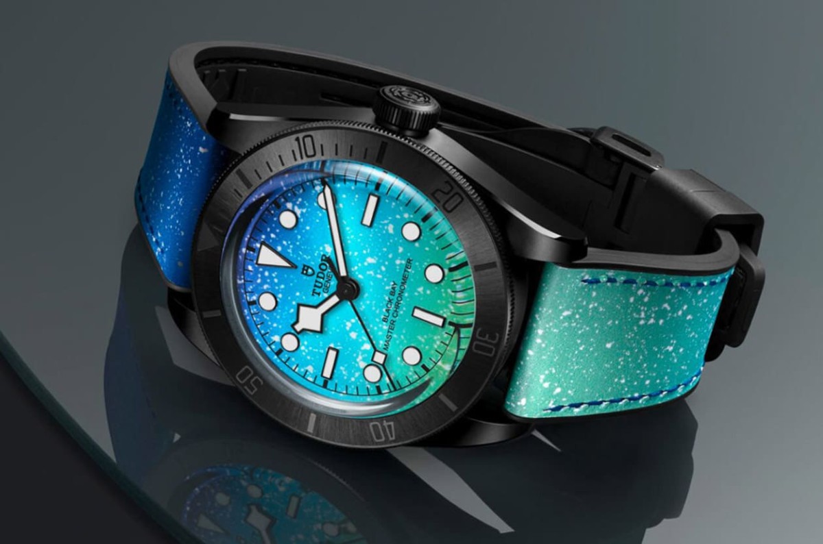 ▲應該是以Black Bay Ceramic為基礎的VCARB車手專用錶,從錶帶到面盤都挹注車隊為了拉斯維加斯大獎賽精心設計的藍綠漸層奇幻色彩。