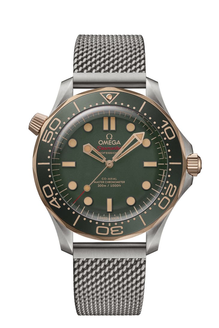 OMEGA先前才推出了新款的海馬潛水300米,也就是將「龐德電影60週年紀念款(藍面)」改成黑面,並新增另一款鋼殼配鈦金屬錶圈、不鏽鋼拉絲處理面盤的款式,結果還不到一個月的時間,歐米茄又再接再厲追加一款同系列新作,這次手錶又改用鈦金屬與青銅金材質組合,搭配話題顏色面盤,衍生出同中求異的新奇感。