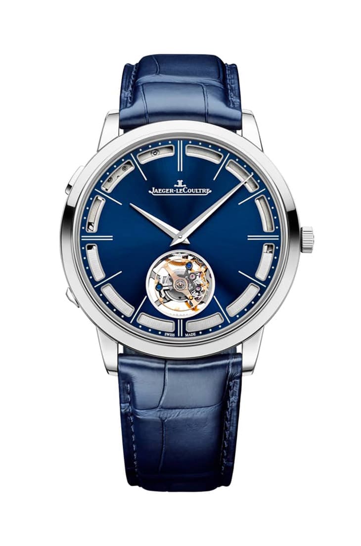 Master Hybris Mechanica Calibre 362與前作同樣採用白金材質製作,搭配藍色鱷魚皮錶帶散發出新朝氣,這款錶雖然集結三問以及飛行陀飛輪兩大複雜功能,但是它的錶徑為41mm、錶殼厚度更僅有7.8mm都讓人格外驚豔,跳多高複雜手錶往往又厚又大的刻板印象。