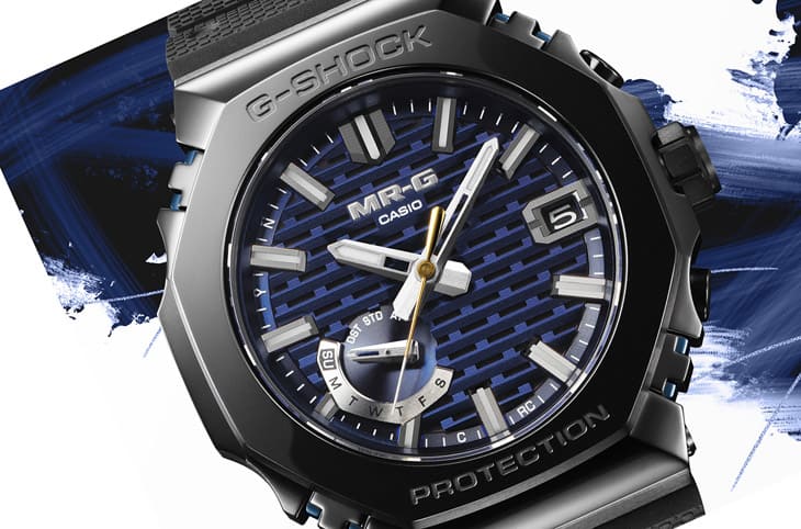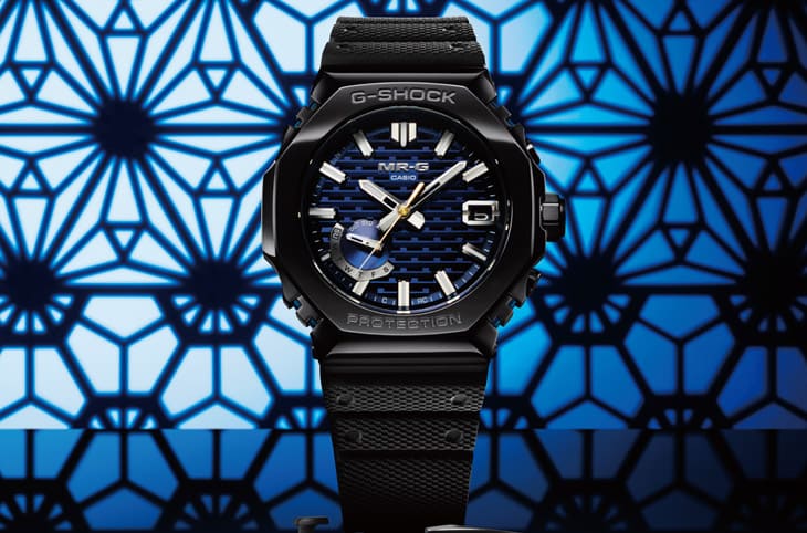 手錶面盤採用的「組子細工」源自日本傳統建築方法和木工技術,特色在於不需使用釘子或金屬零件接合木材,這種技術後來被傳承至許多傳統工藝品中,如幾何圖案「組子格子」等,這也成為連兩年MRG-B2100B面盤顯而易見的特徵。G-SHOCK此次受到水墨畫與書法中常見深藍色墨水啟發,將鏤空的網格面盤進行蒸鍍處理,別看這些網格好像理所當然,它在製作過程必須出動CASIO日本山形廠,運用奈米級加工技術創造出那一個一個微小的開口,除了能營造立體感、強化視覺張力以外,還有個實質作用在於讓面盤底下的太陽能板吸收光線時更暢行無阻,有利於提升Tough Solar充電系統的穩定性。