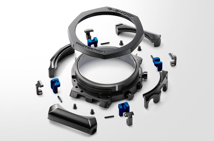 ▲MRG-B2100R-2A光是錶殼結構就由27枚零件組成,材質升級為鈦金屬以及Cobarion®合金組合。