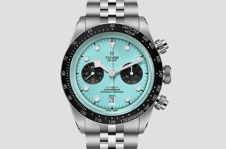 不過說也奇怪,周董這次戴的Black Bay Chrono並不屬於系列中的任一款,雖然它看似仍是不鏽鋼錶殼搭五珠帶、錶圈也是黑色的,不過面盤顏色看起來像是和湖水綠色接近的⋯⋯綠松石色!很自然讓人懷疑這難道又是另一個藏招的宣傳預告嗎?回顧帝舵近年還蠻常與旗下代言人配合替新品預先造勢,例如2021年時先讓貝克漢戴著當時還沒發表的Pelagos FXD在社群發個限動引起錶迷熱議;2024年也先讓自家贊助的F1車隊Visa Cash App RB車手如Daniel Ricciardo(現已離隊)搶先戴上Black Bay Ceramic藍色款在賽季前夕拍攝定裝照,這些並非屬於現役款式的神祕手錶一曝光當然會引起討論,後續如果真的實現市售計畫,等於先刺激了市場的渴望心理,多少有助於後續的銷售層面。