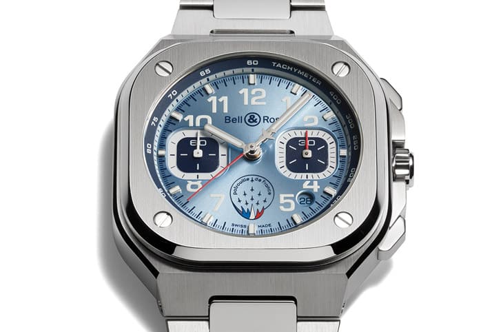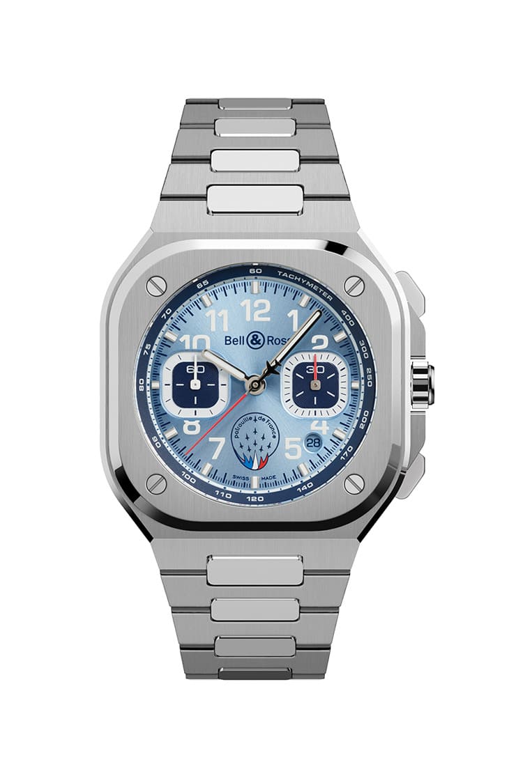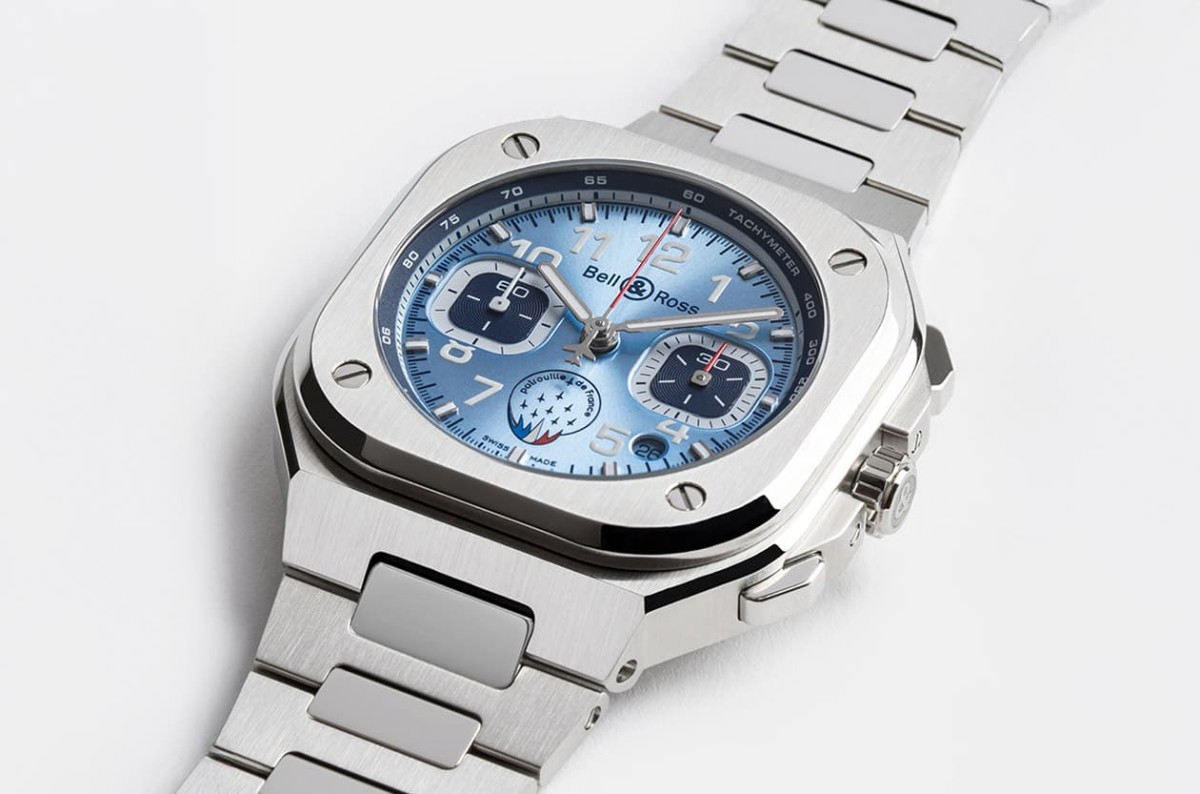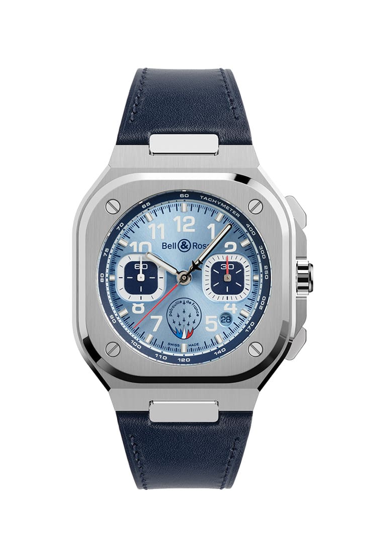 BELL & ROSS再度與法國巡邏兵飛行表演隊(Patrouille de France)合作,第四度創作雙方聯名手錶,新作BR-05 Chrono Patrouille de France全球限量500只,有別於前3款聯名作品都是以BR-03系列為基礎,2025年改由風格摩登的BR-05演繹令人耳目一新,也藉此向法國巡邏兵飛行表演隊的精準度和性能精神致敬。