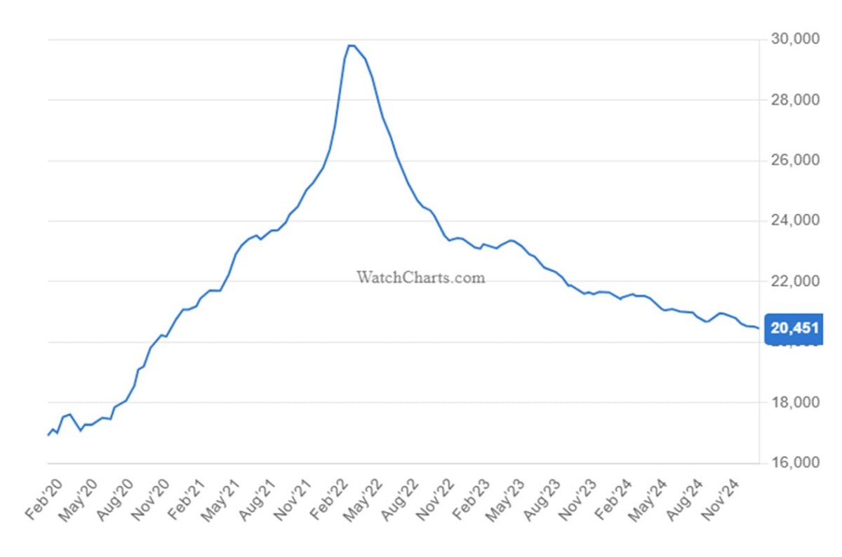 包括高級手錶市場調查研究機構WatchCharts以及「大摩」摩根士丹利(Morgan Stanley)最近發佈的鐘錶市場報告不約而同提到了一些值得注意的數據,這些報告的數據搜集時間為2024年第4季。內容概要而言指出高級手錶二級市場的平均價格還在往下走,比起2024年第3季略跌了1.5%,相較2023年同期也下滑約1.2%。