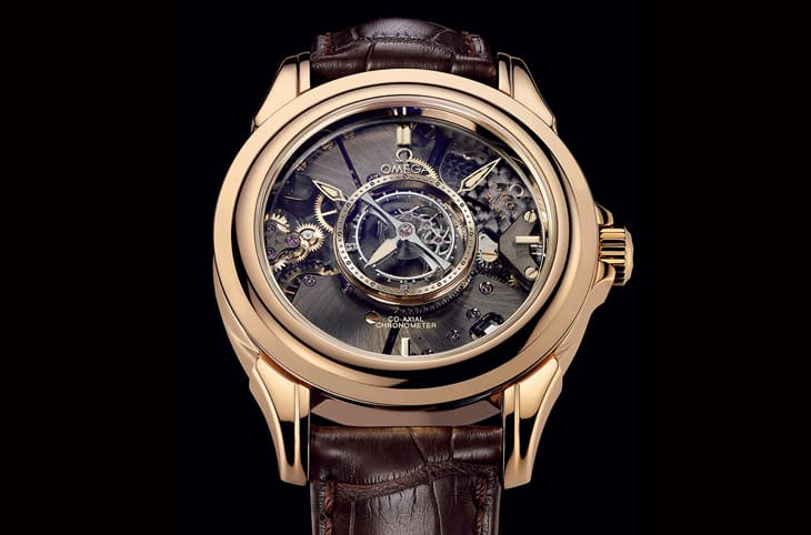 這天他戴的反而是一款已經絕版的歐米茄大錶——碟飛中置陀飛輪,錶款採用玫瑰金製作,搭配咖啡色短吻鱷魚皮錶帶,面盤中清楚可見置於中央的飛行陀飛輪,且由於OMEGA運用藍寶石水晶面盤,因此機芯正面零件連同陀飛輪裝置都能看得清清楚楚,包含12、3、6點方向時標以及時、分指針皆同樣是金色調,在霧黑色透明面盤透視下的機芯組件烘托下讀時效果明確。手錶背面的K金實底蓋刻有古希臘時間之神Chronos圖案,代表歐米茄對精準走時的執著。這款錶搭載的是2635自動機芯,其具備同軸擒縱技術、無卡度游絲擺輪,震頻為3Hz、動力儲存45小時,走時精準度通過瑞士天文台認證,質感不在話下,讓小麥這樣的高爾夫名將也愛不釋手。
