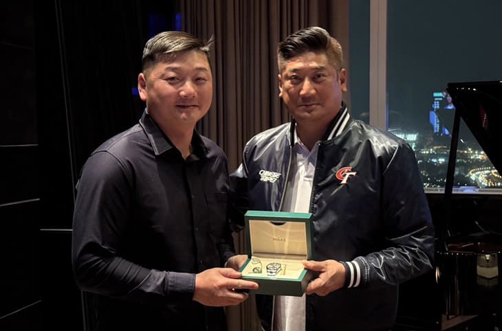 至於這次辜董和12強教練團的晚宴中,他究竟送上了什麼禮物呢?答案是會讓錶迷羨慕不已的勞力士名錶!從中華職棒官方提供的照片中可見,總教練曾豪駒親自接受辜董送上完整的新錶組合,看到那存在感強烈的綠色錶盒還有手錶旁邊的綠色印章就知道是ROLEX了,現場照中還大方公開手錶近照露出禮物真面目,原來是一只藍面的Datejust 126300(光圈、三板帶),這款錶定價達NT$ 292,500,對於收禮者而言肯定是誠意十足的大禮,而且看照片一開始還覺得奇怪,為什麼手錶沒有調到當下的時間,而是顯示24日的10點2分,原來這是辜董送禮時的巧思,如果大家還有印象,面盤上所顯示的時間其實就是中華隊12強奪冠當下的日本當地時間,所以每位收到這份禮物的教練打開錶盒看到手錶,都會湧上滿滿珍貴的回憶,紀念意義破表,搞不好還會有人捨不得拿來戴,希望能夠永遠保有「冠軍時刻」。