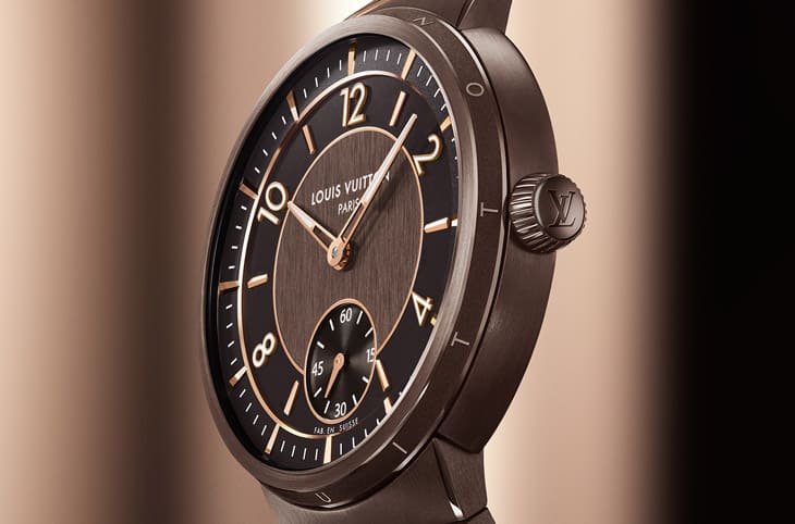 ▲棕色不僅是LV硬箱的代表顏色,過往也是Tambour系列令人印象深刻的配色,如今持續以棕色陶瓷延續傳統。