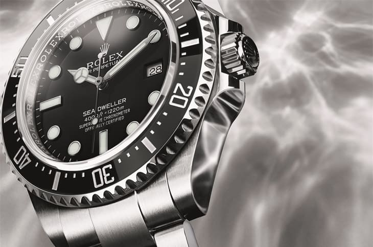 ROLEX旗下的潛水錶可以分成三個級距,從一般標準潛水錶Submariner水鬼開始,到防水性進階、超過1000米的Sea-Dweller海使,再到最高階、防水性能上看3,900米甚至超狂11,000米的深潛手錶Deepsea。隨著防水性能成長,手錶的尺寸以及定價也依序變大變高,讓市場上的選擇非常齊全。