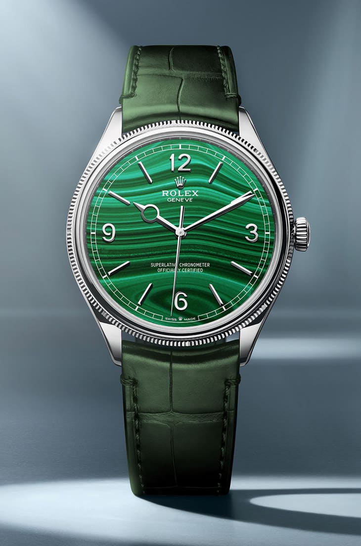 近年高級品牌推出寶石面盤手錶的頻率悄悄提高,而勞力士本身也是創作寶石面盤手錶的專家,過去這種設計比較常出現在Day-Date系列,偶爾Daytona系列或Datejust系列也會加入寶石面盤提升視覺魅力。因此2025年如果他們把寶石面盤套用在1908系列似乎並無不可。Monochrome替勞力士提供一些想法,也許可以把Day-Date和Datejust系列用過的孔雀石和青金石材質放到1908系列上,而如果要搭配這些色澤明豔的寶石,它們的皮錶帶或許也要跳脫原本的黑色或棕色框架,換成與寶石顏色接近的藍色或綠色皮帶。不過如果要換寶石面盤,考量到它們加工的難度,原本1908的小三針設計可能要跟著調整,改成能夠用整片面盤呈現的大三針,這樣一來就不用在寶石面盤上還要額外做出凹陷層次來容納小錶盤。Source:©Monochrome-Watches,2025