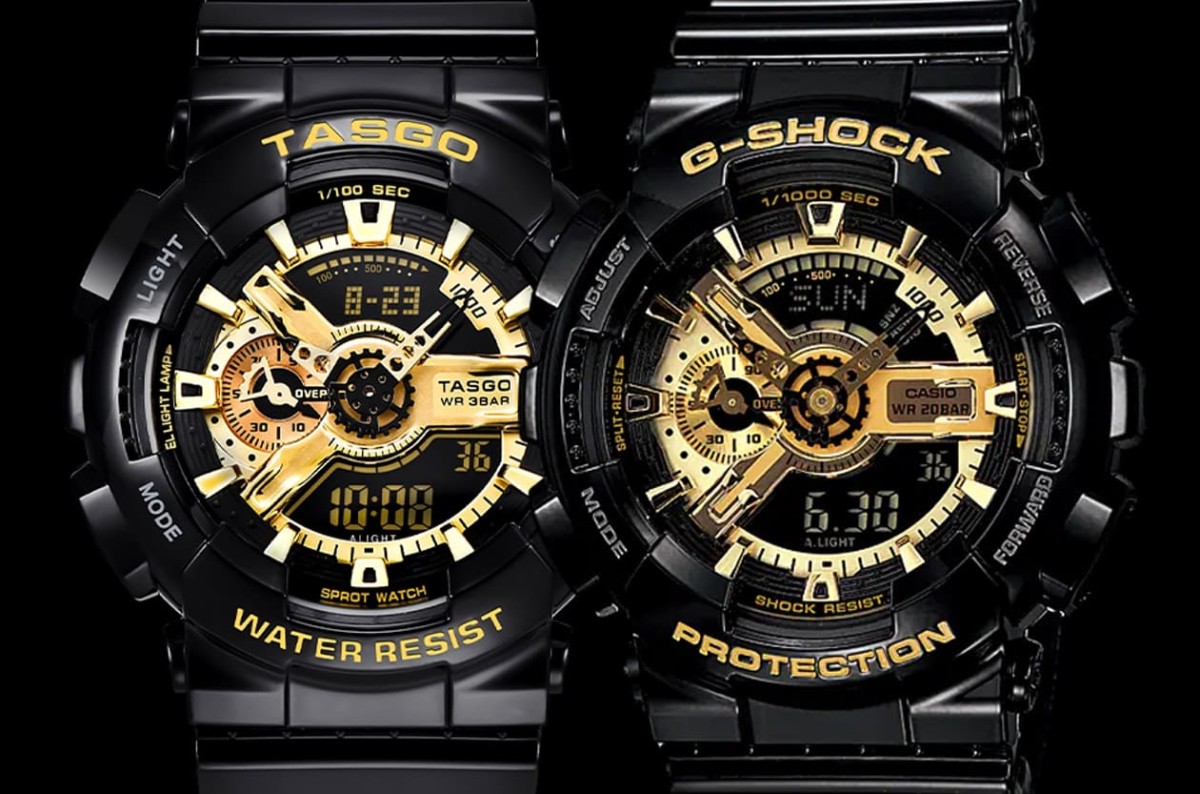 這場官司起於卡西歐公司2021年發現網路上有家「廣州市特遠錶業有限公司」在販售一款TASGO電子錶,型號為T100,無論是手錶造型、某些款式的配色等,都和G-SHOCK的GA-110系列似曾相識,明顯有抄襲的嫌疑。根據中國媒體報導,卡西歐遂向廣東省深圳市中級法院申告,控訴TASGO的產品侵權,結果在一審時,法院認定G-SHOCK手錶有高度設計原創性,在市場上的知名度亦深植人心,產品與品牌本身的連結性很高,所以判定將手錶造型做得狀似G-SHOCK GA-110系列的TASGO侵權,需賠償對方300萬人民幣(約合台幣1,350萬)。
