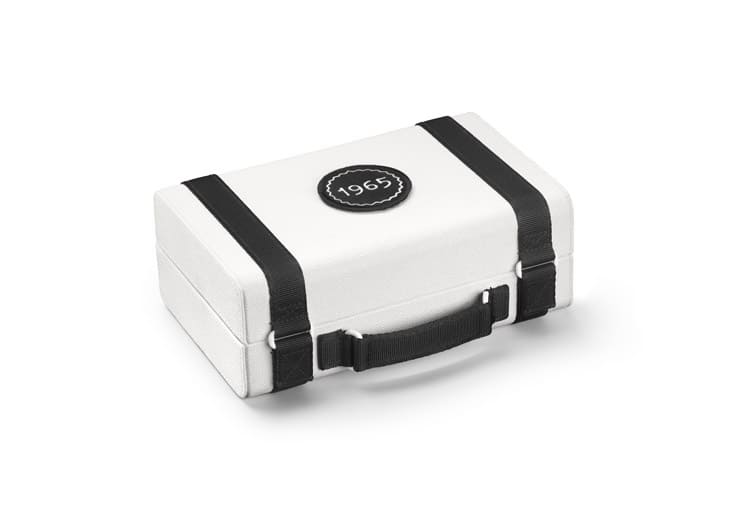 最近如果有到SWATCH指定專賣店看看他們展示的MoonSwatch 1965,會注意到一個仿造正港歐米茄登月錶行李箱錶盒的白色小錶盒,上頭貼上一塊標明1965年的標牌,不過這僅是展示作用,手錶實際的錶盒還是和一般MoonSwatch相同的紙盒(不過紙盒有特別印上1965字樣)。在店上展示的這個小錶盒看起來小巧可愛,裡面還裝有三只錶引發我們的注意。