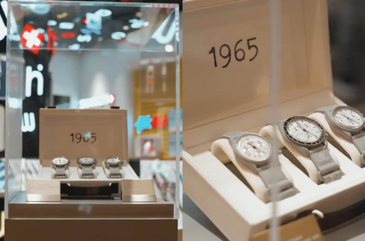 ▲SWATCH指定販售MoonSwatch 1965的專賣店中陳列了一個白色小錶盒,外觀和歐米茄登月錶的行李箱錶盒很像。
