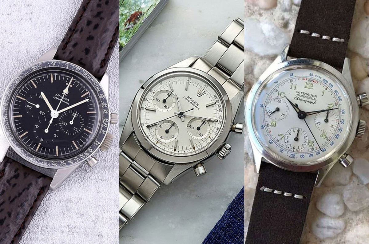 ▲1965年曾提供NASA測試手錶的品牌和作品分別有歐米茄超霸ST105.003、勞力士6238計時碼錶和浪琴表的235T計時碼錶(左至右)。Source:iconeek、HODINKEE、Fratello Watches