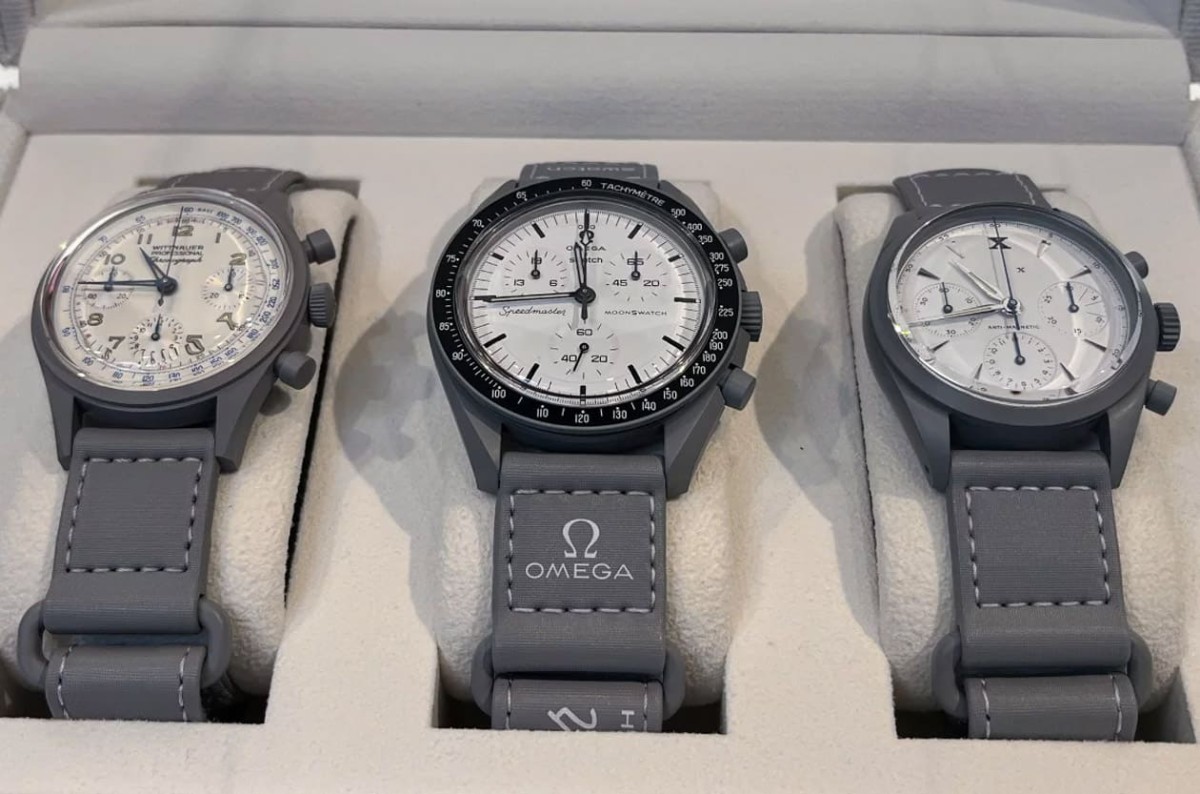 SWATCH 2025年首發的MoonSwatch追溯了1965年歐米茄獲得NASA欽點為太空任務御用手錶廠商的光榮歷史,因此手錶被命名為MoonSwatch 1965,設計一方面傳承歐米茄當年提供給NASA測試用的超霸(型號為ST105.003),同時白色面盤又有點像歐米茄2024年增加的登月錶(310.30.42.50.04.001),結合新舊時代的特色再度讓MoonSwatch掀起錶迷關注和討論。