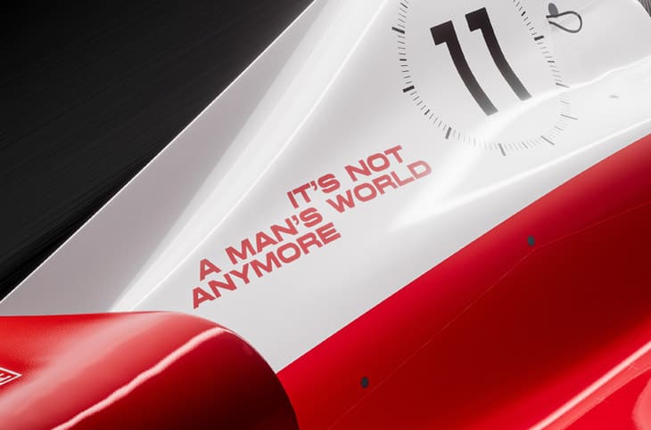 ▲TAG HEUER operated by Hitech賽車上印有"It’s not a man’s world anymore"標語,展現巾幗不讓鬚眉的豪氣。