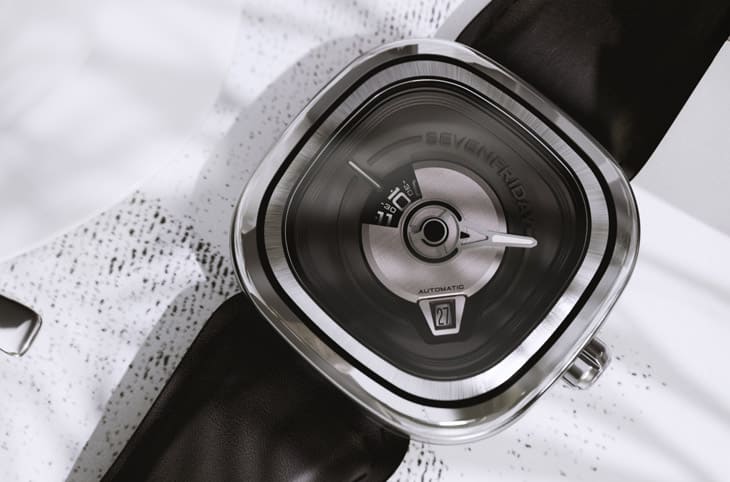錶款的面盤設計靈感來自音響或電腦硬碟等科技產品,由於它呈現的還是我們判讀時間必須的基本單位如時、分、秒等,因此這正是對於Raymond Loewy MAYA法則的一種詮釋,從中也再次驗證了SEVENFRIDAY的品牌宣言:將大膽 的設計,完全融入日常生活。