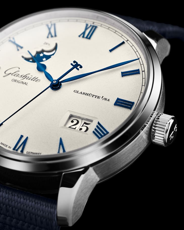 一如1845年在格拉蘇蒂落腳的製錶師,那時鐘錶不像現在有許多機器、科技可以運用,因此製錶師靠著一雙巧手,將一款又一款精緻時計製作成型,議員卓越大日期月相錶就是繼承了這樣的職人工藝精神,製作過程中大量以手工精心裝飾、組裝與調校,為的就是呈現出高級機械錶讓人無法抗拒的優異質感。