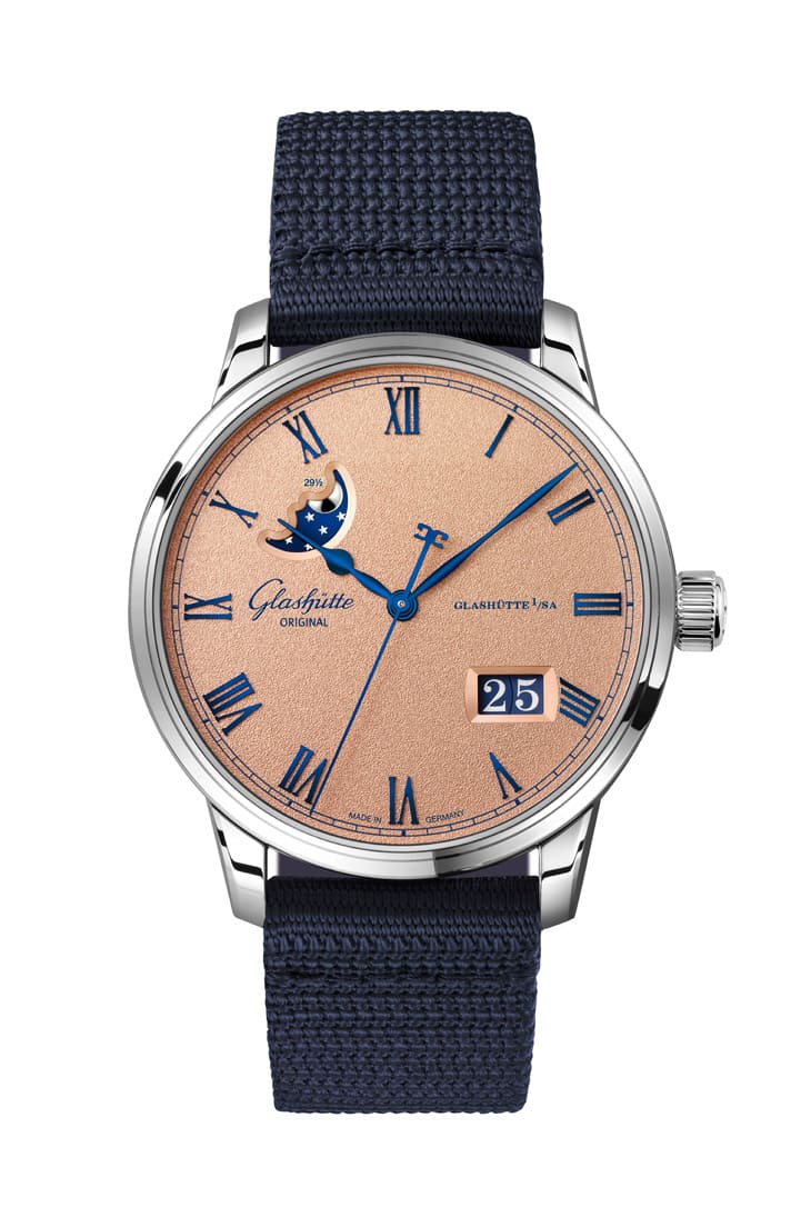兩款新作皆以不鏽鋼材質製成,40mm的圓形錶殼擁有纖細的錶圈、雙層修長錶耳,錶殼零件外觀俱以及緞面拉絲與拋光交替處理,先行替手錶營造值得細細品味的視覺層次,而它的厚實錶冠帶有滿滿的刻槽,便於佩戴者順利靈活地操作。格拉蘇蒂原創深明消費者追求自我個性的心態,因此兩種面盤顏色的議員卓越大日期月相錶都會有鱷魚皮錶帶、尼龍錶帶和金屬鍊帶等三種版本,如此就能更細緻地表現出同中求異的風格。