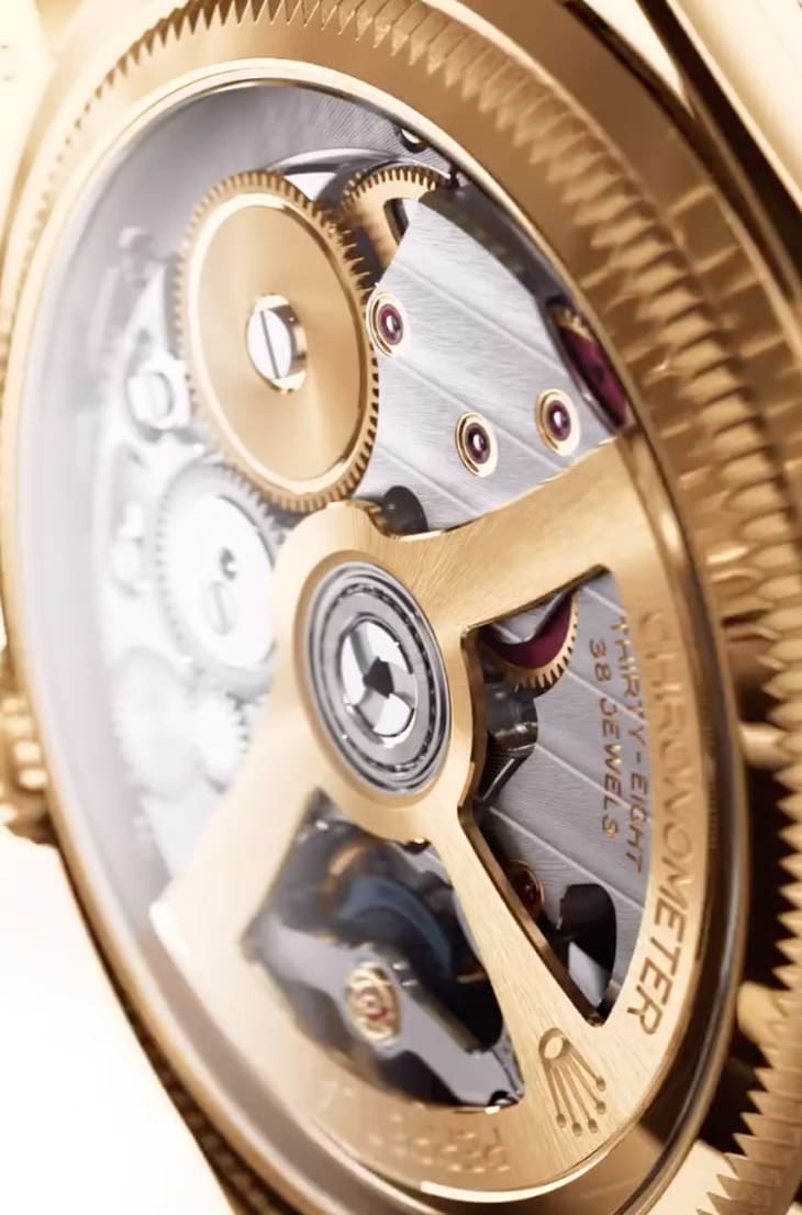 這兩個畫面連著出現,講的是手錶內外不同零件,因為畫面出現前分別出現了"REDISCOVER THE EMOTION"和"OF A FIRST LOOK"兩段帶有文字說明的畫面,圖和文配起來會不會是要說勞力士有些現有的發明和設計重新改良過之類。