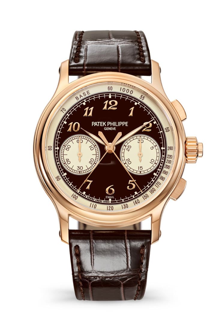 這款追針計時碼錶5370首次推出玫瑰金款,搭配棕色大明火琺瑯面盤,以及米色內填琺瑯小盤和測速計刻度,琺瑯皆以手工塗覆於18K金底板上,確保顏色能持久如新。手錶搭載CHR 29-535 PS機芯,承襲傳統手動上鍊、導柱輪和水平離合器設計,並蘊含多達七項專利,包含新型追針裝置專利。370R-001配有深棕色鱷魚皮錶帶和新獲專利的三折疊式錶扣。