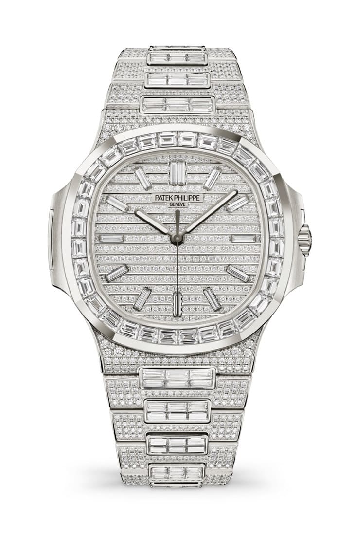 同樣在2025年送舊迎新的還有金鷹系列的滿天星作品,5719/10G-010停產後,百達翡麗旋即以5811/1460G-001補上缺口,這款嶄新的白金高級珠寶錶,運用精湛的寶石鑲嵌工藝,為Nautilus系列的經典設計增添璀璨耀眼的魅力。手錶的八角形錶圈鑲嵌舉行切割鑽石,面盤上也鑲嵌多排明亮式切割鑽石,同時PP取消了日期顯示,讓鑽石可以鋪好鋪滿整枚面盤,鍊帶中央鍊節和主要鍊節分別鑲嵌矩形切割鑽石及明亮式切割鑽石,華麗精緻之餘,還富有不同幾何造型堆疊的層次美感。這款珠寶錶順勢將內部更新為26-330 S自動機芯,其擁有停秒功能,確保調校時間時能精確至秒這個最小單位,這是過往324 S C機芯沒有的細節進化。