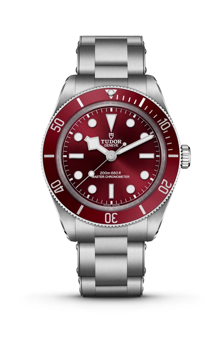 帝舵表全新推出的Black Bay 58,靈感依舊源自1958年其首款防水200米的潛水錶,並融合了經典美學與現代工藝。這款作品採用39mm磨砂不鏽鋼錶殼,搭配酒紅色鋁圈與面盤,面盤設計保留了BB系列招牌的「雪花」指針、棒棒糖造型的秒針也是取經TUDOR早期潛水錶的外觀,此次結合與他們本身很有關連的紅色調,更有一種專屬帝舵潛水錶的獨特感。手錶搭載MT5400-U自動上鍊機芯,特色在於通過了大師天文台認證,保證比COSC達到更高的走時精準度及大於15,000高斯的抗磁性能。新作分別有五珠帶、三板帶及橡膠錶帶,一律配備T-fit快速調節系統,便於佩戴者調整錶帶長度,其共有5個孔位,至多能調校錶帶延長8mm,適合不同腕圍,乃至穿著潛水服佩戴的各式情境。