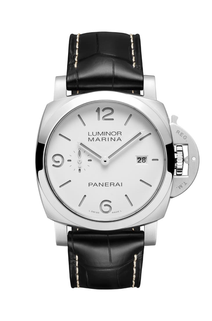Luminor新款Marina保留代表性的設計,例如錶冠護橋等沛納海鮮明特色,而簡潔的面盤也只放上PANERAI名稱與Luminor Marina的字樣,搭配放大邊框的日期顯示窗,維持足敷多數人使用的日常功能性。沛納海首次在核心系列中採用Super-LumiNova® X2夜光塗層,此創新材質的亮度更高,在光源不足的環境下也能清晰判讀。Luminor Marina系列共5只新作皆搭載全新P.980自動機芯,它擁有三日動力儲存、震頻4Hz,跟上沛納海機芯的基本水準。這批新作還有個亮點在於它們是Luminor系列首款達到500米防水性能的新生代,此外由於機芯的厚度相對纖薄,因此錶殼的厚度降低12%、重量也同步減輕15%,就連錶耳設計也同步薄型化。還有錶帶與錶扣的設計則是此系列首次結合PANERAI的錶帶快拆系統,以後佩戴者無需找專人協助,靠自己徒手就可以輕鬆拆裝錶帶。