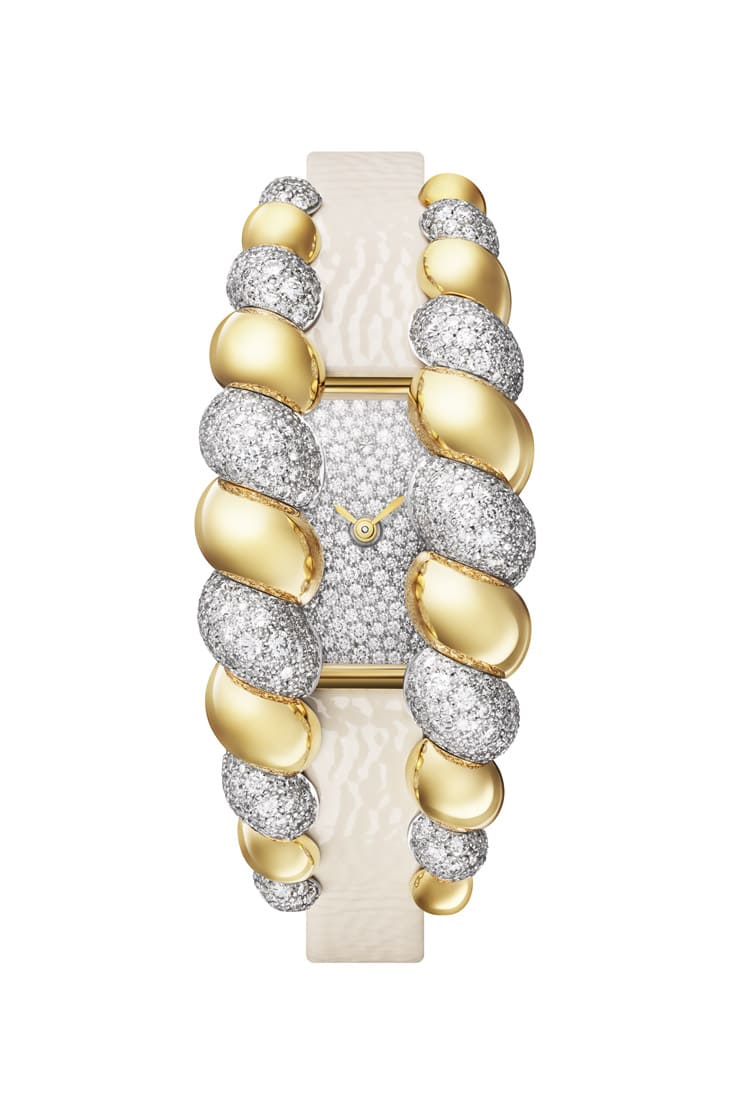卡地亞揮灑獨特創意,將金質、鑽石和寶石融匯,催生出令人耳目一新的Tressage手錶,其設計靈感源自於蘊含新穎創意、傳承CARTIER標誌性風格的作品,如Maillon手錶、Coussin手錶和Reflection de Cartier手錶等,散發自成一格、奢華璀璨的迷人魅力,系列作品汲取卡地亞經典風格元素——K金、寶石與獨特造型,並將之巧妙交織,成就媲美雕塑品般的微型藝術之作。