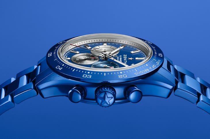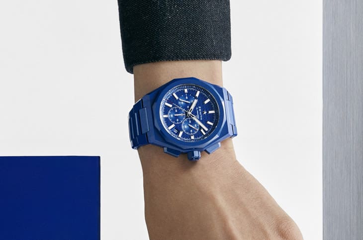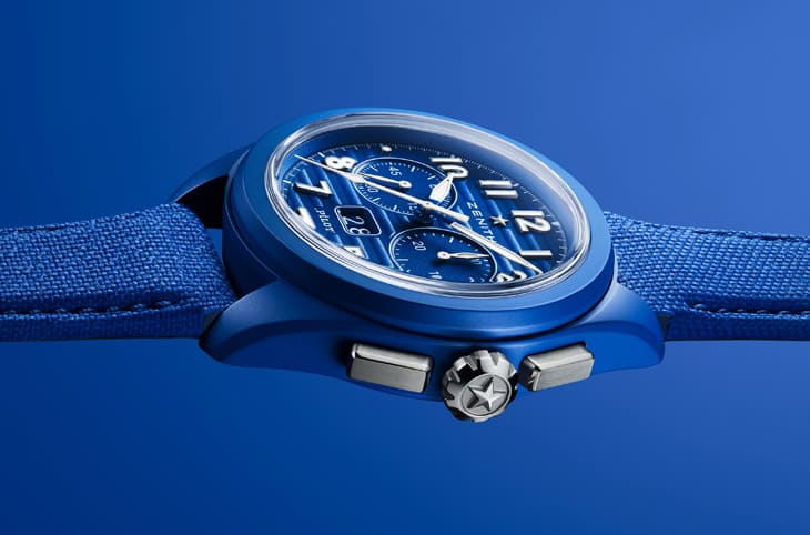 這系列三只錶皆奠基於藍色陶瓷材質,陶瓷是一種堅固耐用、質地輕盈、觸感柔和、高度防刮且低致敏性的材質,但其加工難度極高,與表面塗層的金屬不同,陶瓷的色澤與材質融為一體,呈現獨特的光澤和深邃質感,想要精確調配出如「真力時藍」般的色調是一項精細又複雜的工藝,需時數月才研發發成。