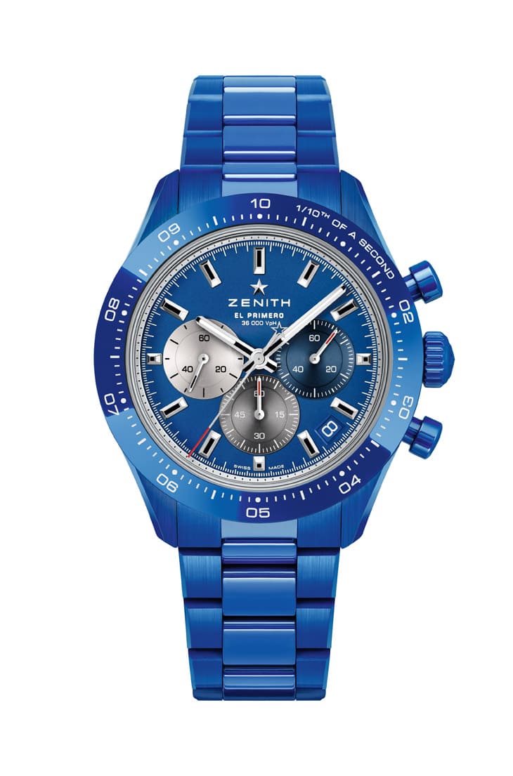 真力時以標誌性的藍色調重新演繹三款計時碼錶作品,包括Chronomaster Sport、DEFY Skyline與Pilot等,由於ZENITH之名的靈感來自璀璨夜空,創辦人Georges Favre-Jacot將品牌命名為「ZENITH」,意指天體在天空中所能達到的最高點,象徵對卓越的追求,因此藍色向來是真力時的標誌性顏色,適逢創立160週年的重要里程碑,因此他們於新作上大量使用這種具辨識度也很具人氣的顏色點綴手錶。