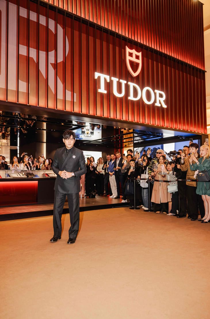 回顧在錶展現場之際,周杰倫抵達位於Palexpo展覽中心的展館,受到帝舵高層的熱情接待,他參觀品牌展區之餘,也不免俗地在TUDOR Logo牆前拍攝留念,還親切地與來自全球的媒體與嘉賓互動交流,現場氣氛熱烈。