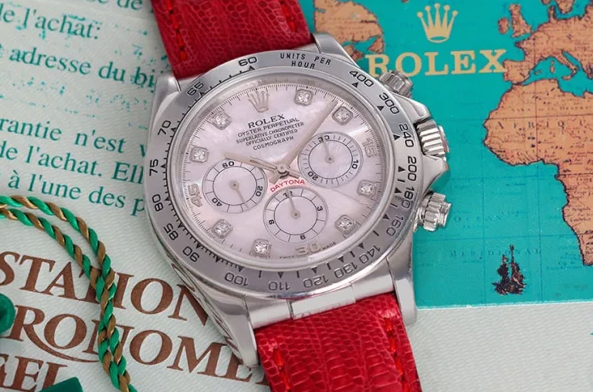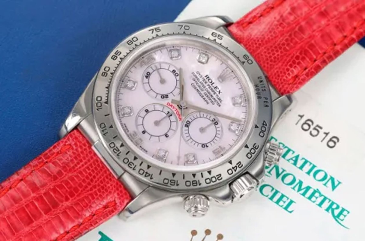 手錶採用鉑金錶殼、淡粉紅色珍珠母貝面盤,面盤還鑲嵌了鑽石時標,令這只手錶在Daytona家族中顯得格外與眾不同。蘇富比鐘錶部門負責人Benoît Colson指出,這不僅是該系列中唯一配備鑽石時標的版本,更是他所見過最重要的Daytona之一,這只手錶現身拍賣會意義非凡,代表這項神祕且精緻的私人委託計畫都將投身拍賣會、進入收藏市場,找到新買家也猶如畫下完美句點。