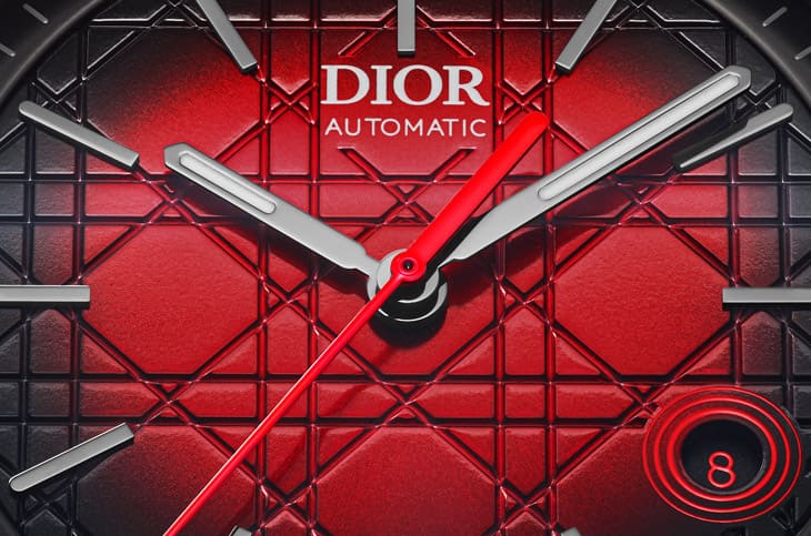 ▲DIOR經典設計元素 Cannage 籐格紋圖案的線條裝飾,為錶盤增添奢華精緻的微型紋理。