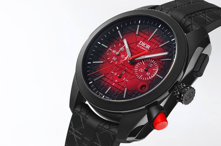 DIOR最具代表性的元素在腕錶上相遇,化為Chiffre Rouge 系列,錶款以迪奧先生眼中「生命的色彩」為主體,彰顯大膽特質;他的幸運數字「8」也因這抹搶眼鮮紅色更顯熠熠生輝,如同一枚奇妙的護身符。錶殼側面稍許加大的錐形結構呈現建築式不對稱美學,透明錶底蓋設計展現工坊精湛的製錶技藝,所有款式的動力皆來自高精準自動上鍊機械機芯。