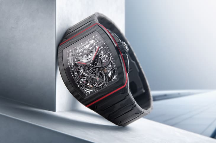 至於如果你喜歡更進一步的材質創新,UltraFino Carbon版本則是不容錯過的進化型選擇。其以單體碳纖維壓製而成的錶殼與鍊帶,重量更輕、強度更高,搭配黑色PVD處理的UT01鏤空機芯,以及可選的紅、白、天藍橡膠墊圈裝飾,整體風格更具未來感與動感,專為講求個性與性能並重的錶迷而來,此外BIANCHET還會附上與墊圈裝飾顏色一致的橡膠錶帶,供錶主決定手錶的風格。
