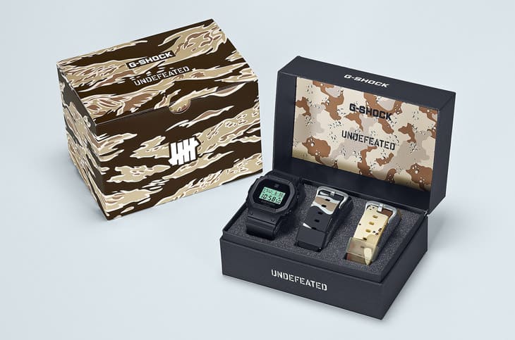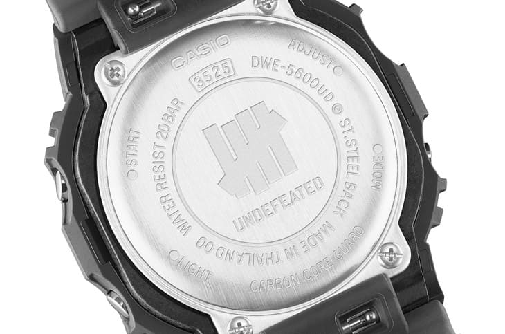 DWE-5600UD就連包裝都沒馬虎,經由UNDEFEATED特別設計的專屬盒裝,把黑色與迷彩元素融合得剛剛好,完美延伸手錶的街頭基因,不說還以為買到哪雙限定潮鞋,整體質感超有誠意。