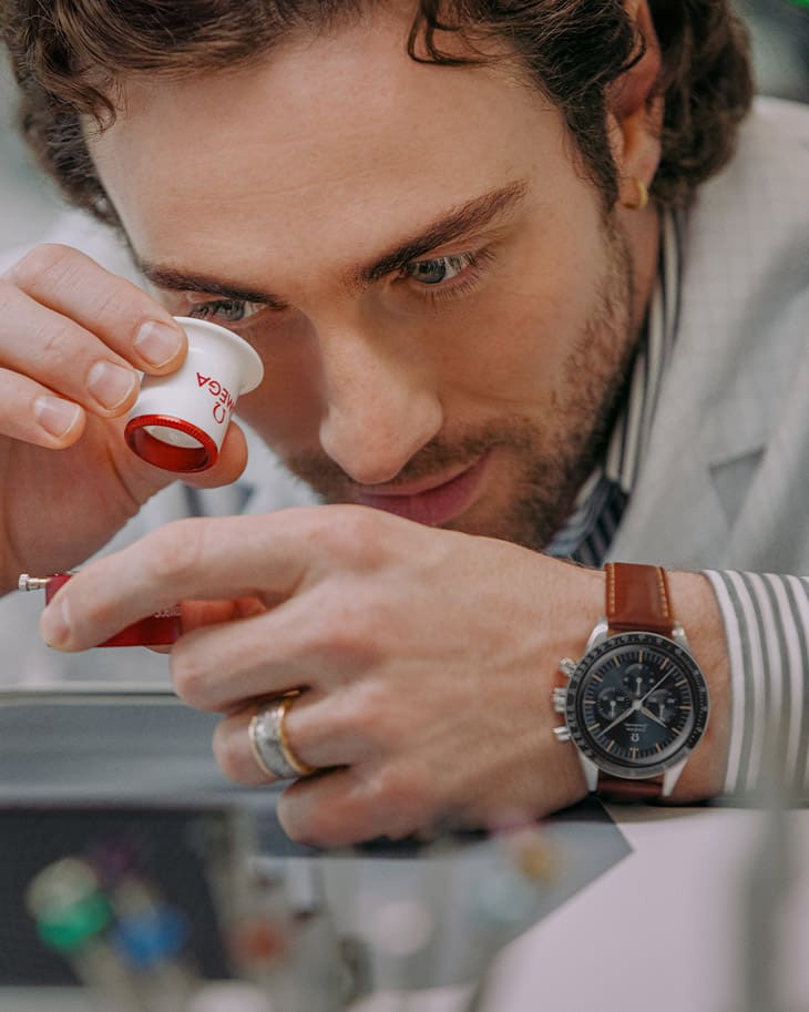 ▲Aaron Taylor-Johnson參觀歐米茄錶廠之餘,也手癢實際體驗了製錶相關流程。