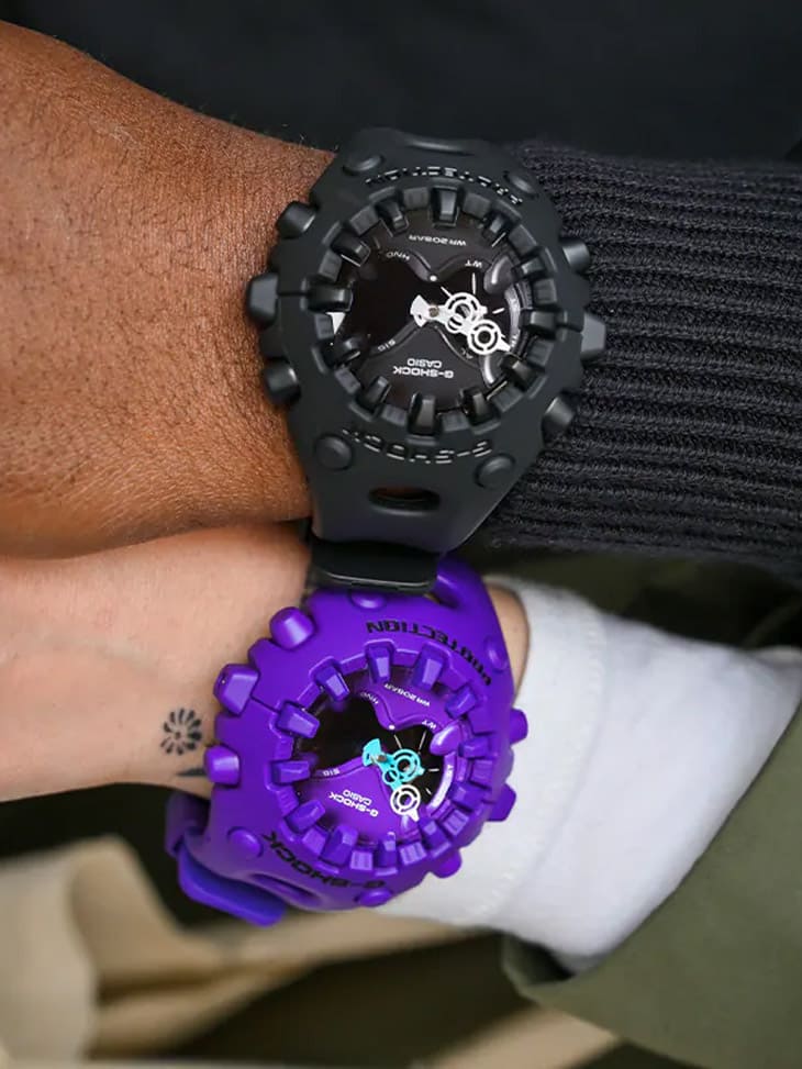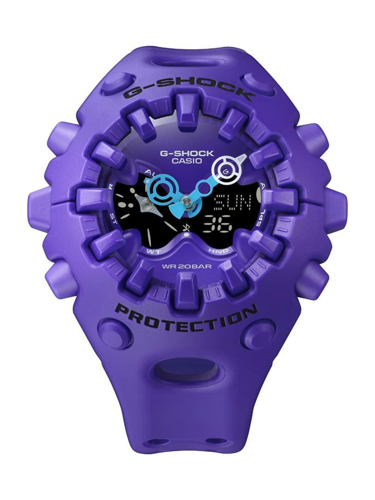 GA-V01系列同步推出四種配色選擇,個個都有個性,例如機械未來感濃厚,最具科技氛圍的金屬銀(GA-V01A-8AJF)、經典不敗,硬派愛好者首選的霧面黑(GA-V01-1AJF)、潮味濃烈,Y3K風格代表的電藍紫(GA-V01-2AJF),還有視覺衝擊強烈,街頭穿搭必備的螢光黃(GA-V01-9AJF),每款戴在手上都很醒目,和一般的G-SHOCK手錶各異其趣。