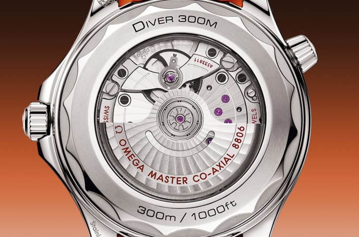 手錶內在的核心是OMEGA自製的8806同軸擒縱大師天文台認證機芯,這枚機芯沒有日期功能,但有55小時動力儲存、矽游絲、抗磁能力達15,000高斯,整體穩定性與抗干擾能力都屬有口皆碑的水準,在透明底蓋下,還能欣賞到精緻的機芯修飾與紅字細節,對於機械控來說也是一種享受。