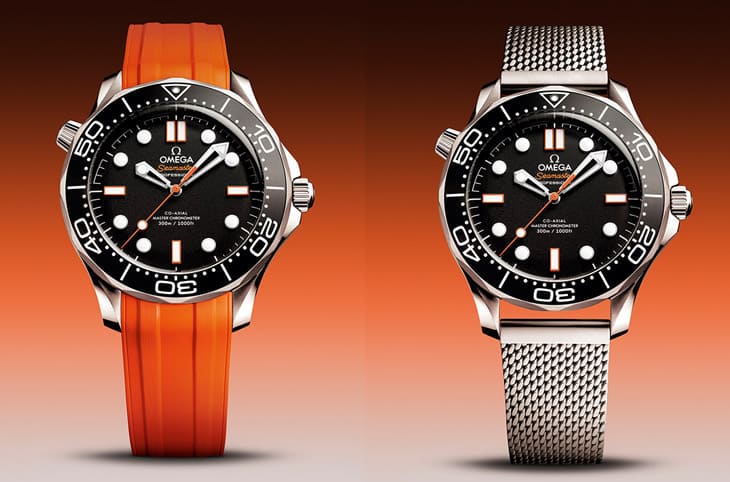 歐米茄替這款錶提供兩種錶帶選擇:一是亮橘色橡膠錶帶,外觀年輕有活力,很適合搭配T恤與短褲的夏日穿搭;另一種是米蘭鍊帶,帶有點復古味道,整體感覺更沈穩,無論選哪種,都有摺疊式錶扣,佩戴穩固也舒適。