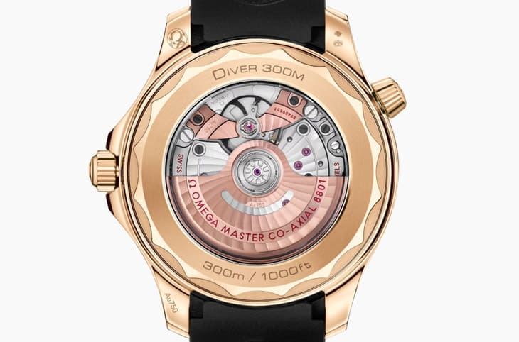 兩款新作皆搭載歐米茄的8801自動上鍊機芯,具備同軸擒縱、55小時動力儲存,並通過大師天文台(Master Chronometer)認證,抗磁、避震與精準度都有一流表現,更有趣的是,機芯自動盤與擺輪橋板材質也呼應貴金屬錶殼,一律使用Sedna™金打造,透過透明底蓋可一覽細膩打磨與日內瓦波紋,讓整體設計一致性更上一層。