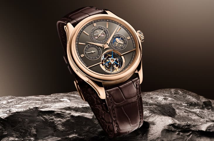 18K玫瑰金材質/985自動上鍊機芯/時、分、小秒、日期、星期、月份、年份顯示/陀飛輪裝置/萬年曆功能/月相顯示/日夜顯示/藍寶石水晶鏡面、透明底蓋/防水50米/錶徑42mm/參考價:NT$ 5,450,000