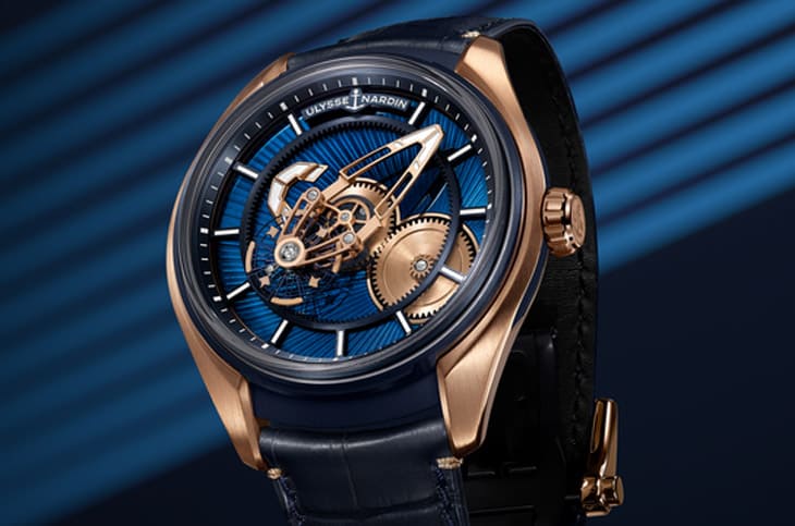 此次焦點之一,是承襲經典的Freak X奇想系列。2001年誕生的Freak奇想手錶,以去除傳統指針與面盤的顛覆性設計震撼錶壇,被視為「另類」的製錶象徵,2019年推出的Freak X進一步優化結構,配備錶冠、外型更纖薄,適合日常佩戴。來到2025年,新作Freak X玫瑰金琺瑯錶以藍色PVD鈦金屬搭配玫瑰金側翼,營造鮮明對比;最引人注目的是其小時盤,運用半透明機鏤琺瑯工藝,飾以太陽放射紋並覆上藍色琺瑯層,動態旋轉間呼應飛行卡羅素機芯的運行。這項設計挑戰傳統琺瑯技法,因為小時盤並非固定零件,而是需承受運行與溫度變化的關鍵部件。雅典錶透過自家Donzé Cadrans琺瑯工坊的專業技術,讓這項複雜工序得以實現,將傳統工藝與當代機械科技緊密結合。
