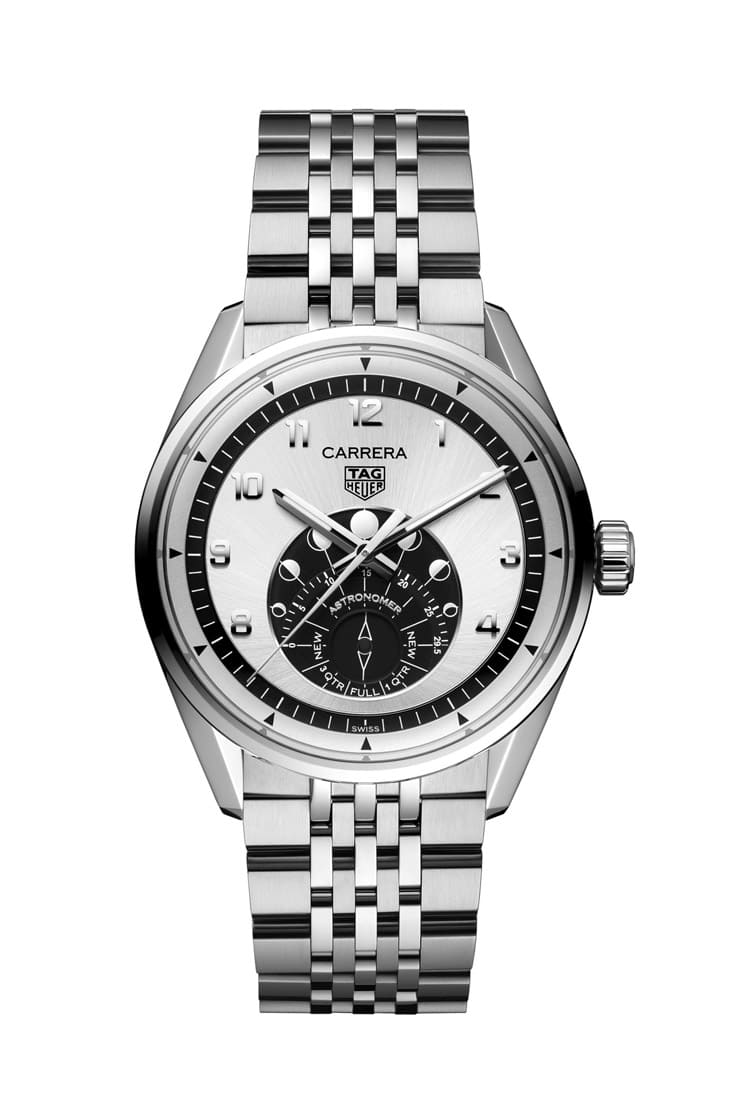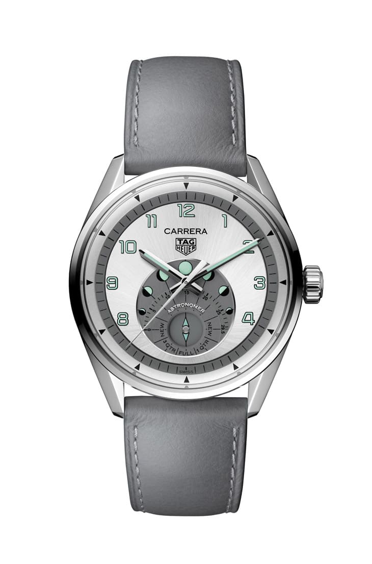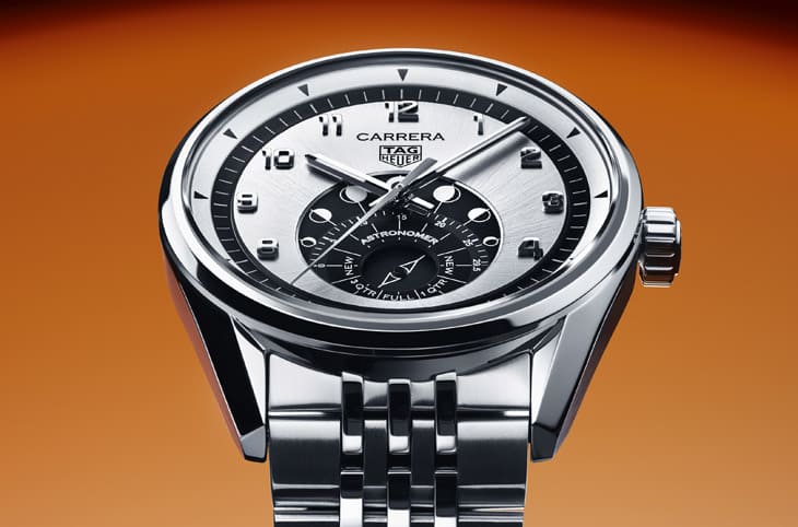 泰格豪雅於Geneva Watch Days 2025的另一個新亮點,是Carrera Astronomer月相錶。Carrera系列原本與賽車賽事緊密連結,如今卻把視野拉高至宇宙,這並不是TAG HEUER第一次與太空扯上關係,1962年John Glenn就戴著HEUER懷錶上過太空,而最新的Carrera Astronomer,則將這段傳奇轉化為一種新的月相詮釋。
