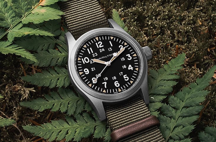 ▲漢米爾頓卡其野戰系列三針錶(42mm),參考價為NT$ 22,500。