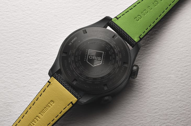 ORIS x BAMORD ProPilot Mission Control高度測量錶搭載793自動機芯(基於Sellita SW300改制而來),提供時、分、中央秒針、日期快調與停秒功能,動力儲存56小時。實底蓋上會注意到刻有英尺轉公尺的換算表,用意是要彰顯其飛行錶的專業屬性。