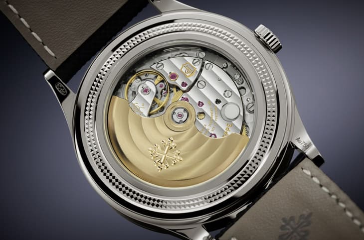 26-330 S QR這枚自動上鍊機芯能同時承擔萬年曆與逆跳日期的雙重挑戰,並保持極佳的可靠性。在面盤側,9點鐘方向是星期、3點鐘方向是月份,12點鐘方向則顯示閏年,6點鐘方向則安放了極精準的月相。逆跳日期指針並不是繞圈前行,而是在月底時會瞬間「跳回」每月1日,過程俐落乾脆,這套設計使用了螺旋彈簧機制,確保了指針動作的乾淨俐落,也避免了額外消耗能量,展現出百達翡麗對細節的執著。月相顯示的誤差控制在122年才需校正一天,這種超過錶主「一輩子」的精度,幾乎保證了佩戴者在一生中無需手動調整,加上每小時28,800次的震頻與百達翡麗印記嚴格規範的日差標準,這枚機芯在穩定性與美感上可謂雙全,而雖然45小時動力以現今標準並不算長,但對多數收藏家這樣的細節並不影響吸引力,畢竟,透過透明底蓋欣賞21K金自動盤與橋板打磨,才是這款機芯最迷人的日常儀式感。